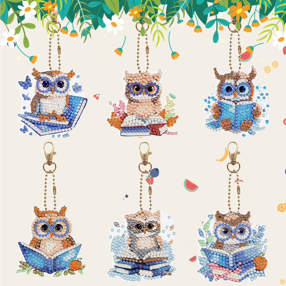 6Pcs DIY Diamonds Key Ring Double Sided Cartoon Special Shaped Hanging Ornaments