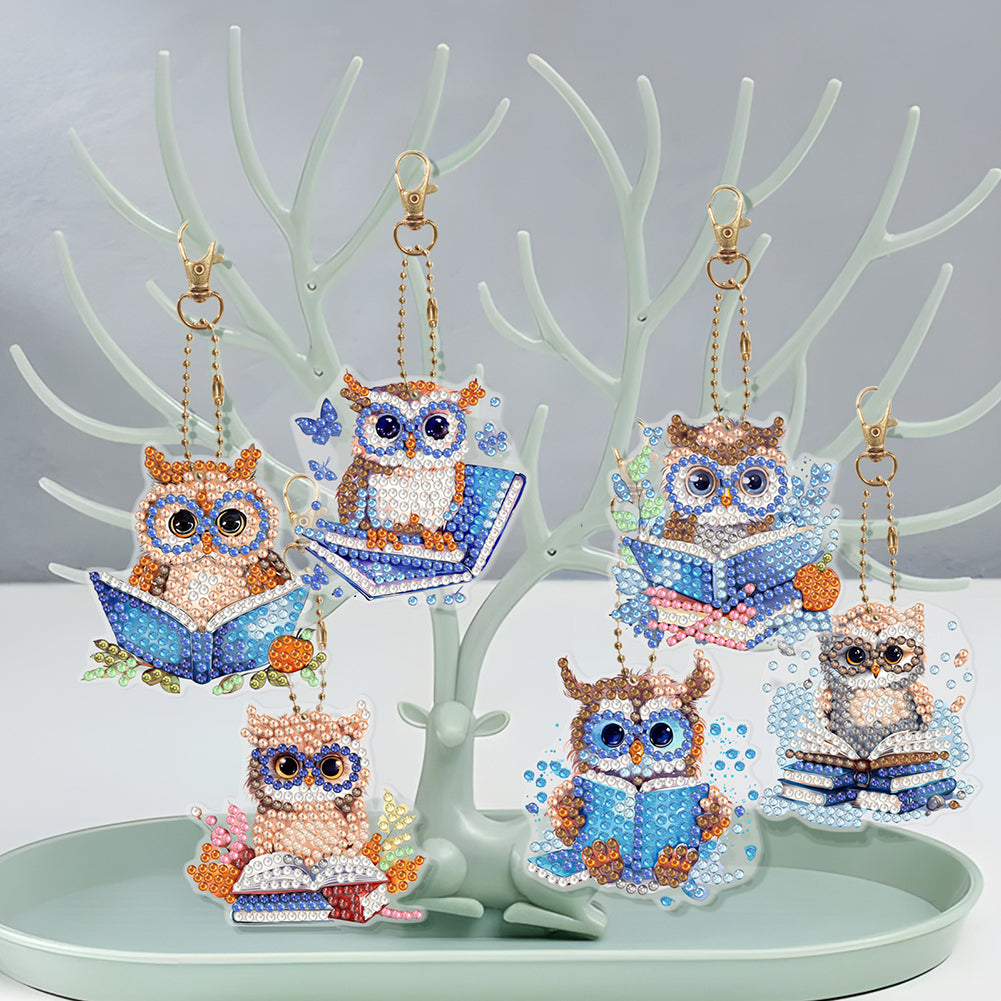 • Load image into Gallery viewer, 6Pcs DIY Diamonds Key Ring Double Sided Cartoon Special Shaped Hanging Ornaments