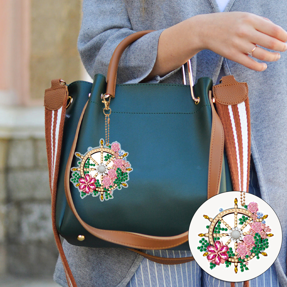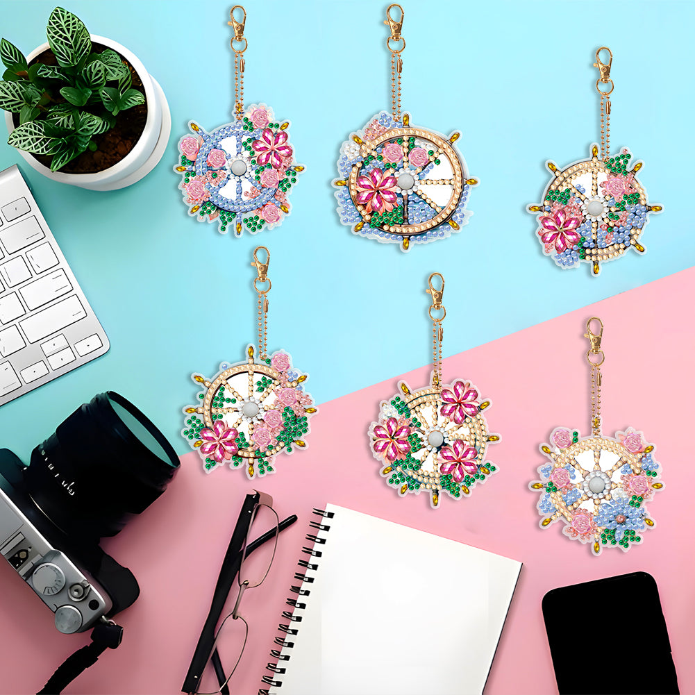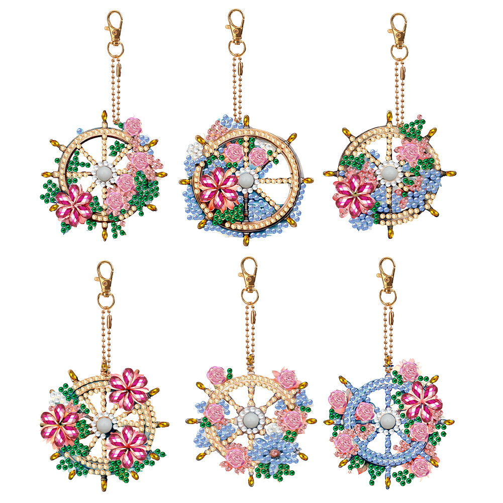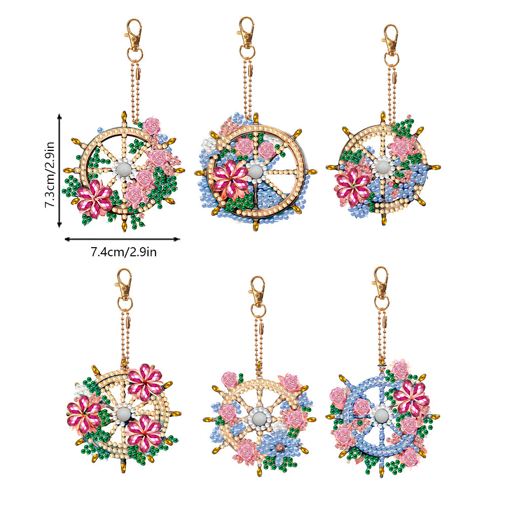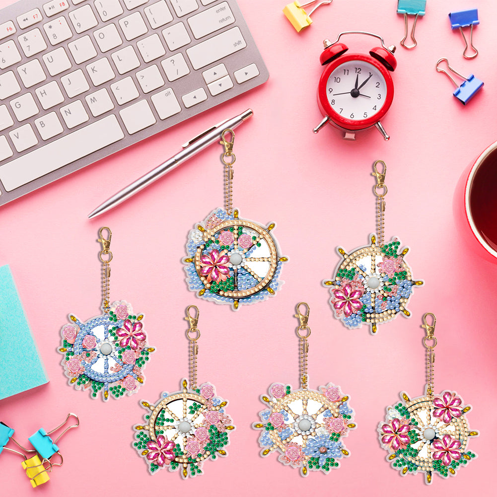 6PCS Double Sided Special Shape Diamond Art Keyring (Flower Rudder)