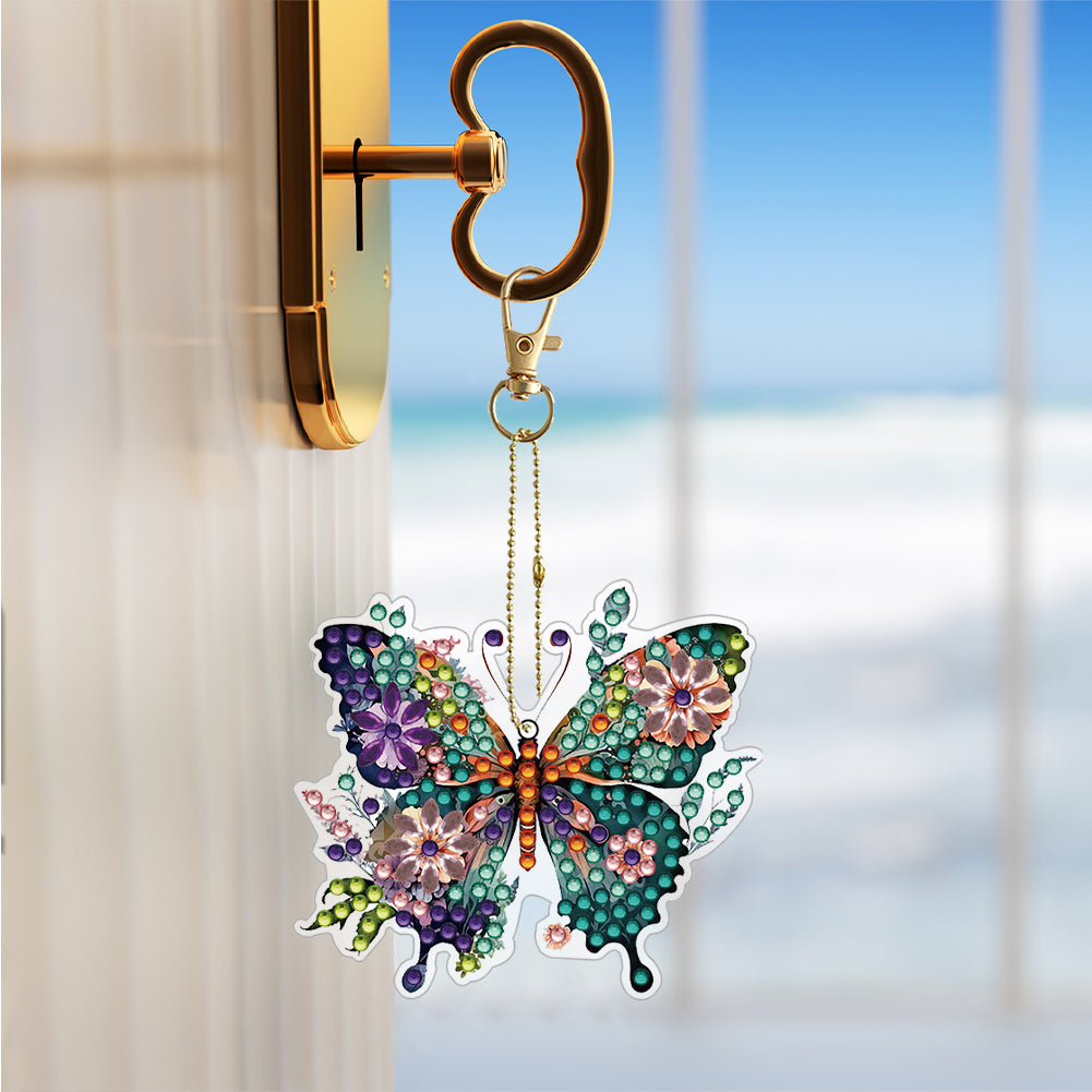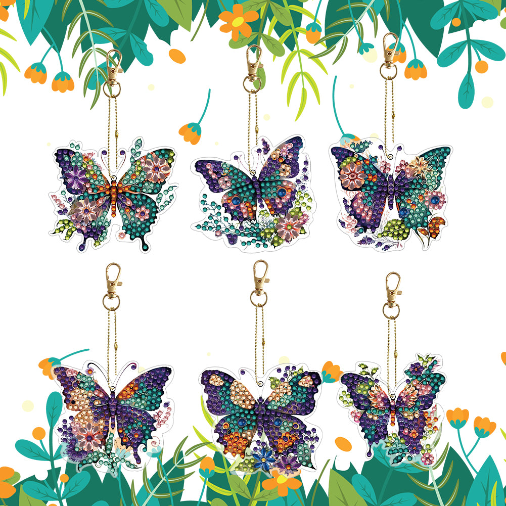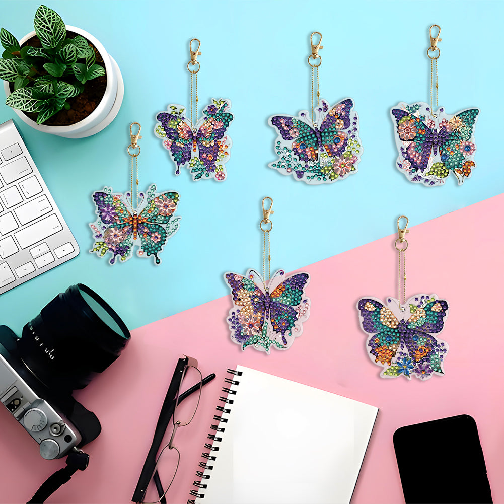 6PCS Double Sided Special Shape Diamond Painting Keychain (Flower Butterfly)