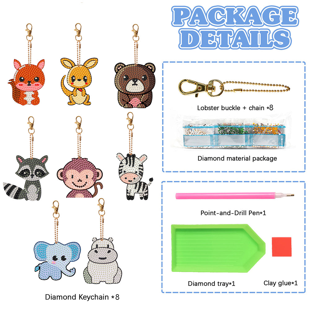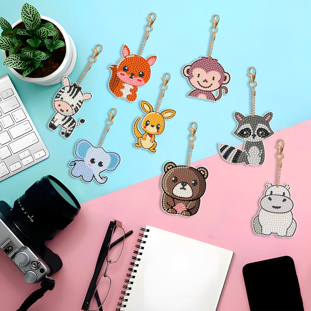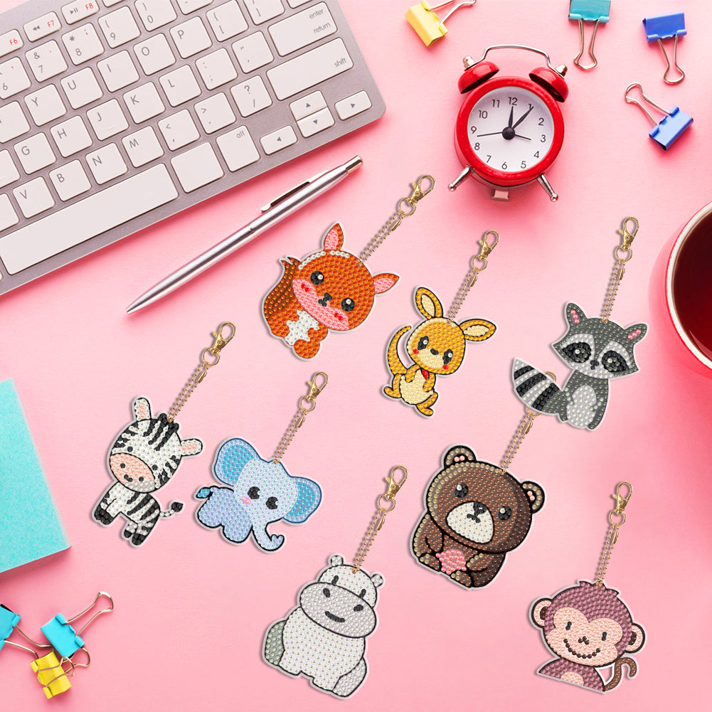 8PCS Diamond Art Keyring Little Animal Double Sided Crown Special Shape Handbag