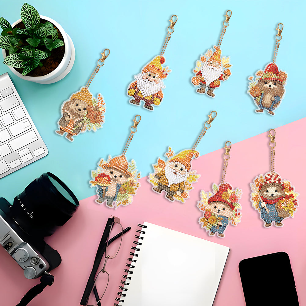 8PCS Double Sided Special Shape Diamond Painting Art Keychain Pendant Cute Dwarf