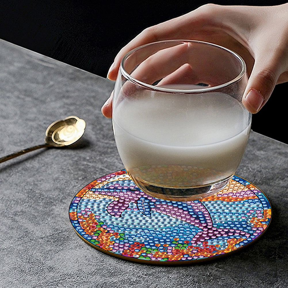 8PCS Special Shape Diamond Painting Coasters Kits (Dolphin Stained Glass)