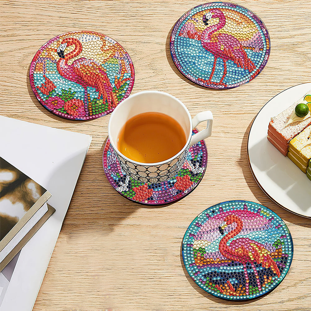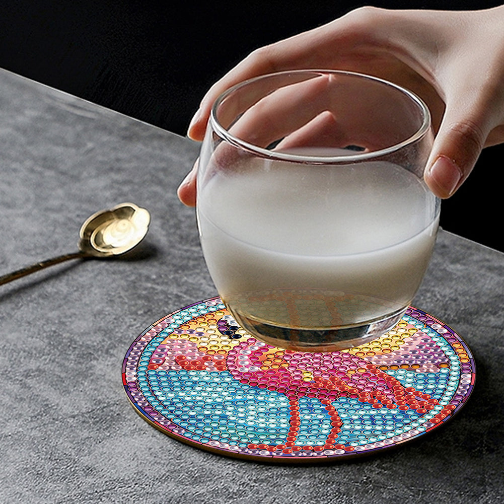 8PCS Special Shape Diamond Painting Coasters Kits (Flamingo Stained Glass)