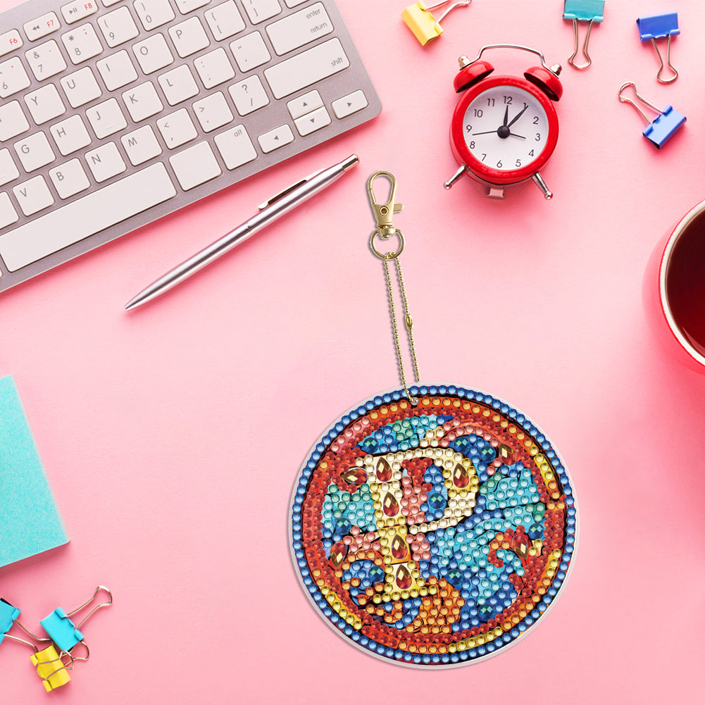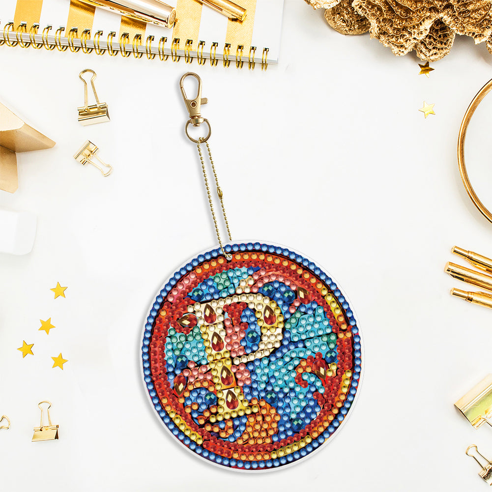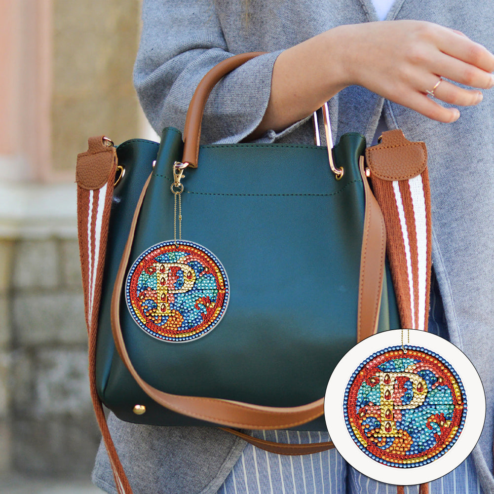 A-Z 26 Letters Double Sided Special Shape Diamond Painting Keychain Pendant (P)