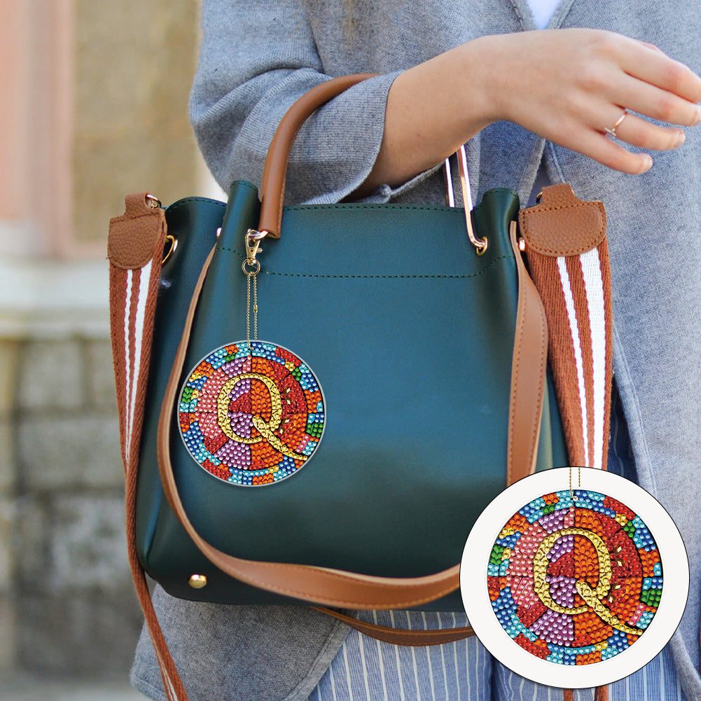 A-Z 26 Letters Double Sided Special Shape Diamond Painting Keychain Pendant (Q)