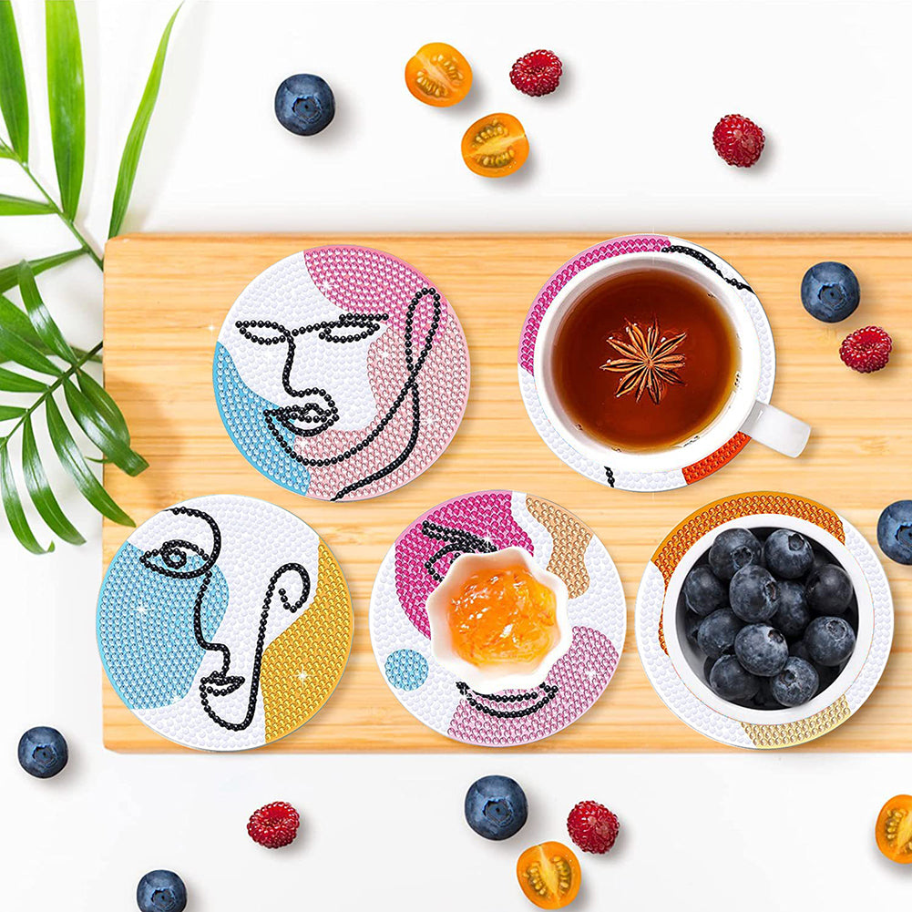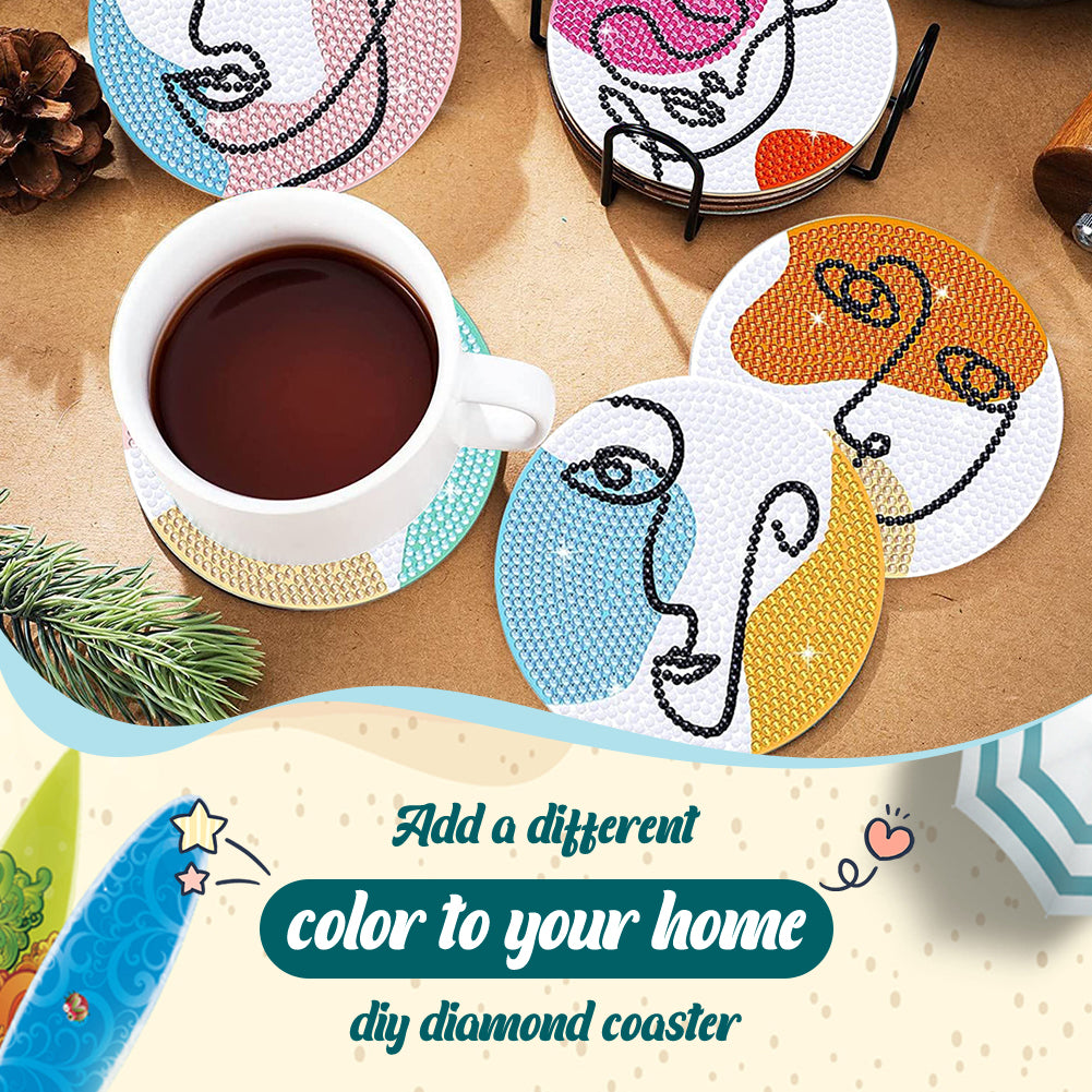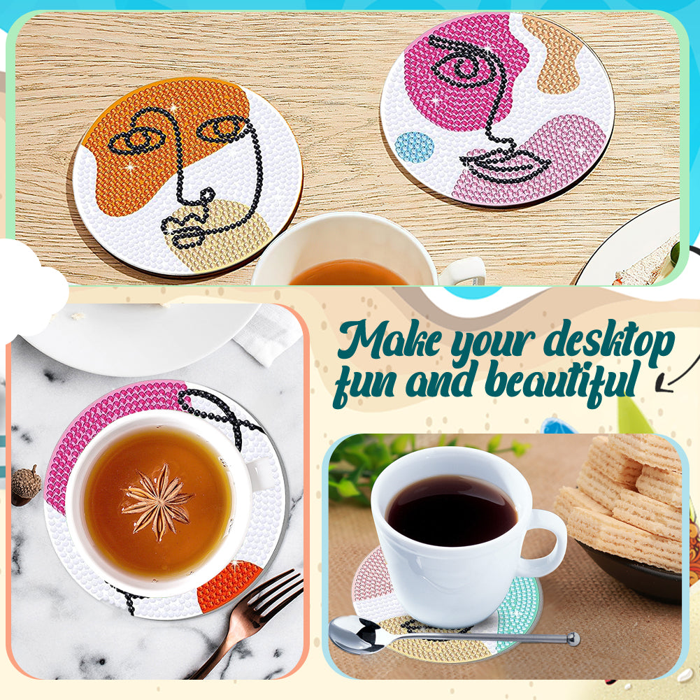 Diamond Painting Art Coaster Kit Special Shape (8PCS Abstract Facial Line)