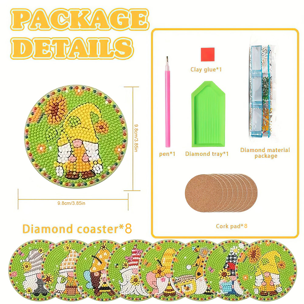 Diamond Painting Art Coaster Kit Special Shape (8PCS Garden Gnome)