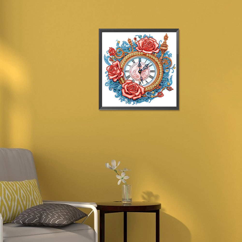 Diamond Painting - Partial Special Shaped - Clock and blue vine roses (30*30CM)