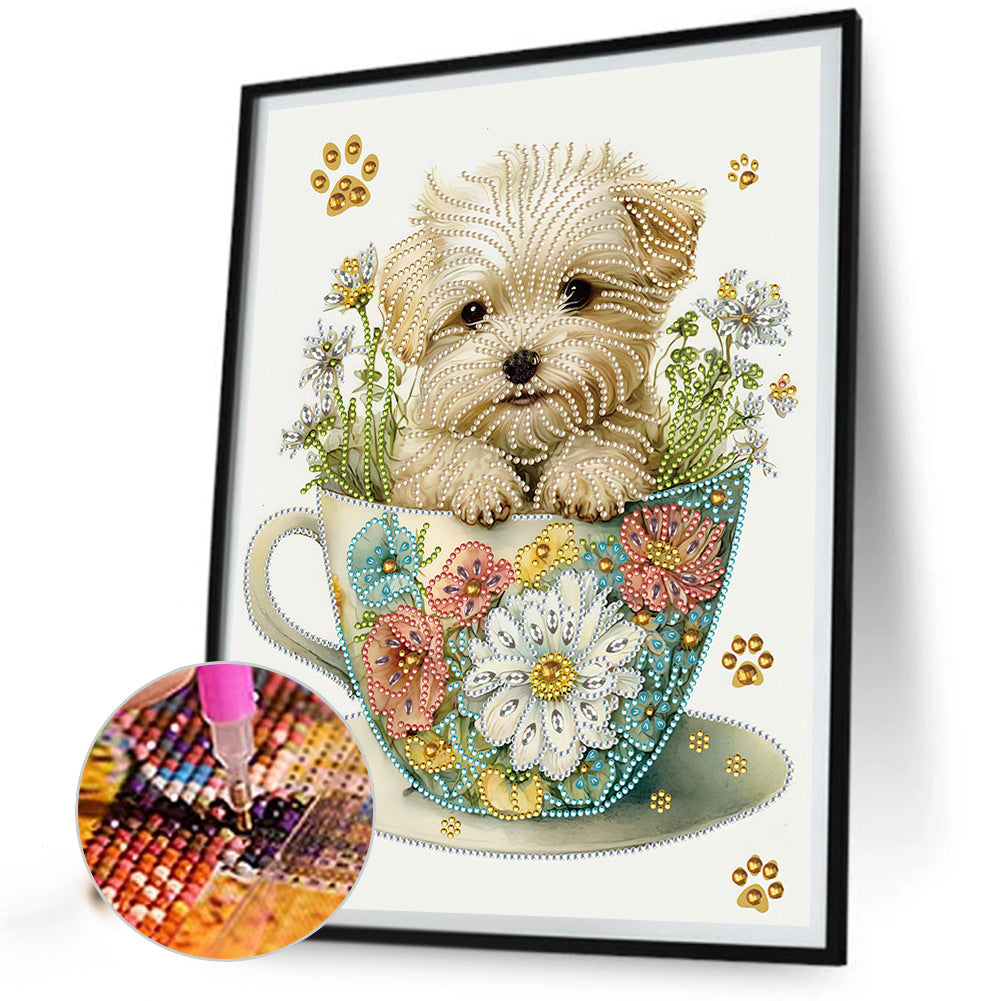Diamond Painting - Partial Special Shaped - cup white dog (30*40CM)