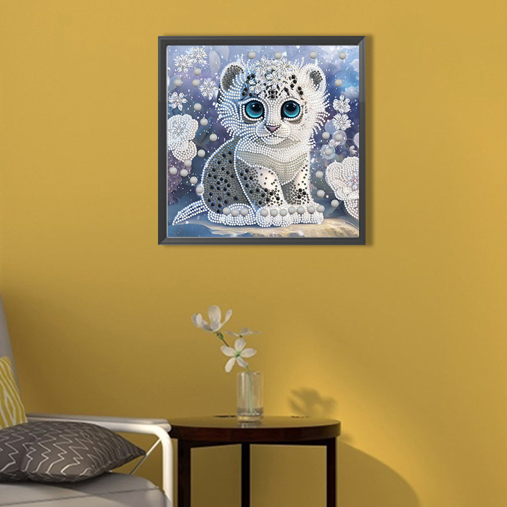 Diamond Painting - Partial Special Shaped - jeweled little white tiger (30*30CM)