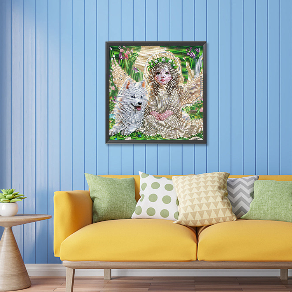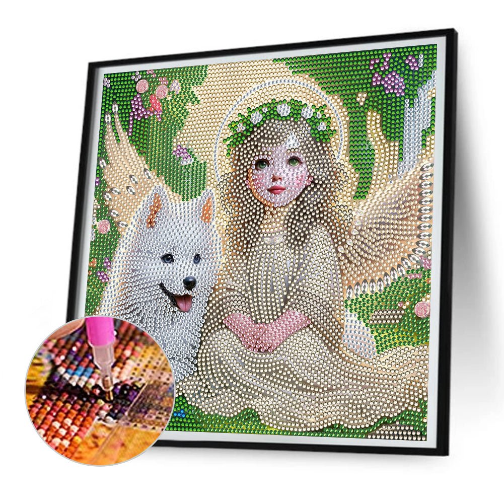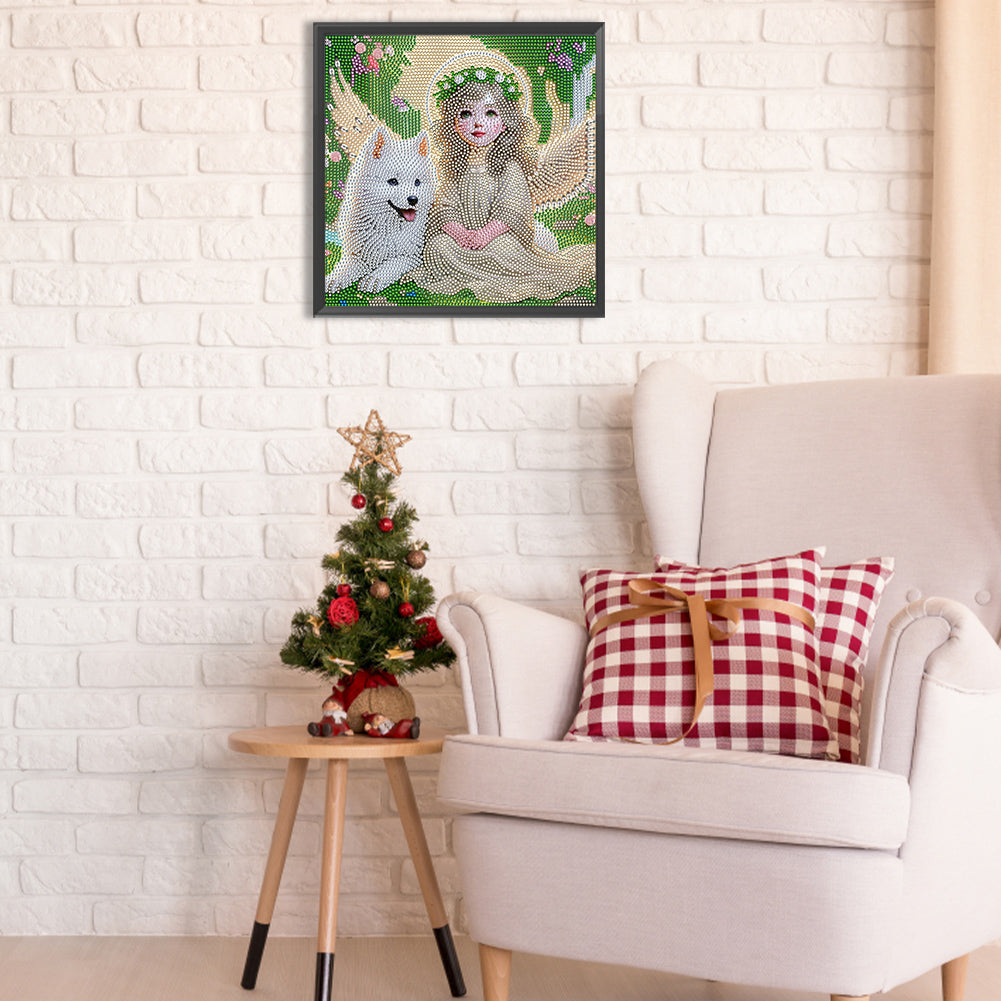 Diamond Painting - Partial Special Shaped - Little Angel and Wolf Cub (30*30CM)