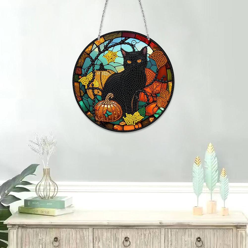 DIY Crystal Diamond Pendant Single-sided 5D Round for Home Garden (Cat)