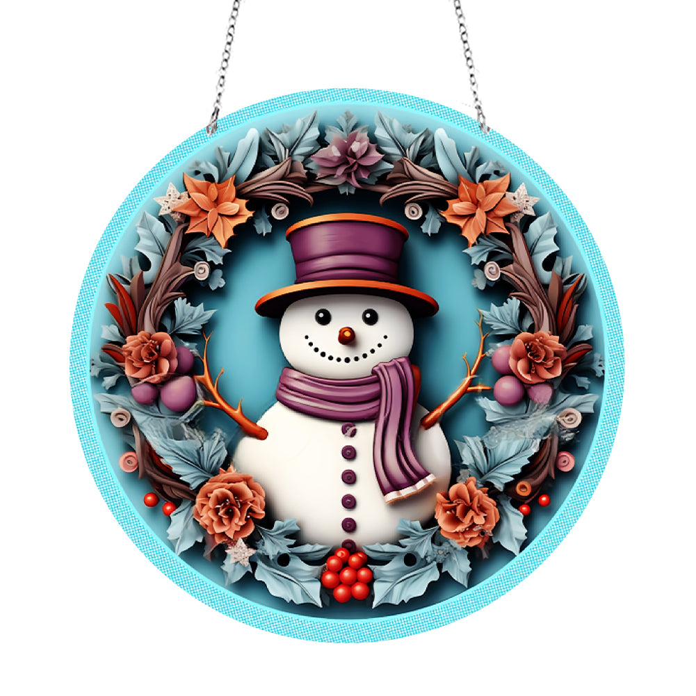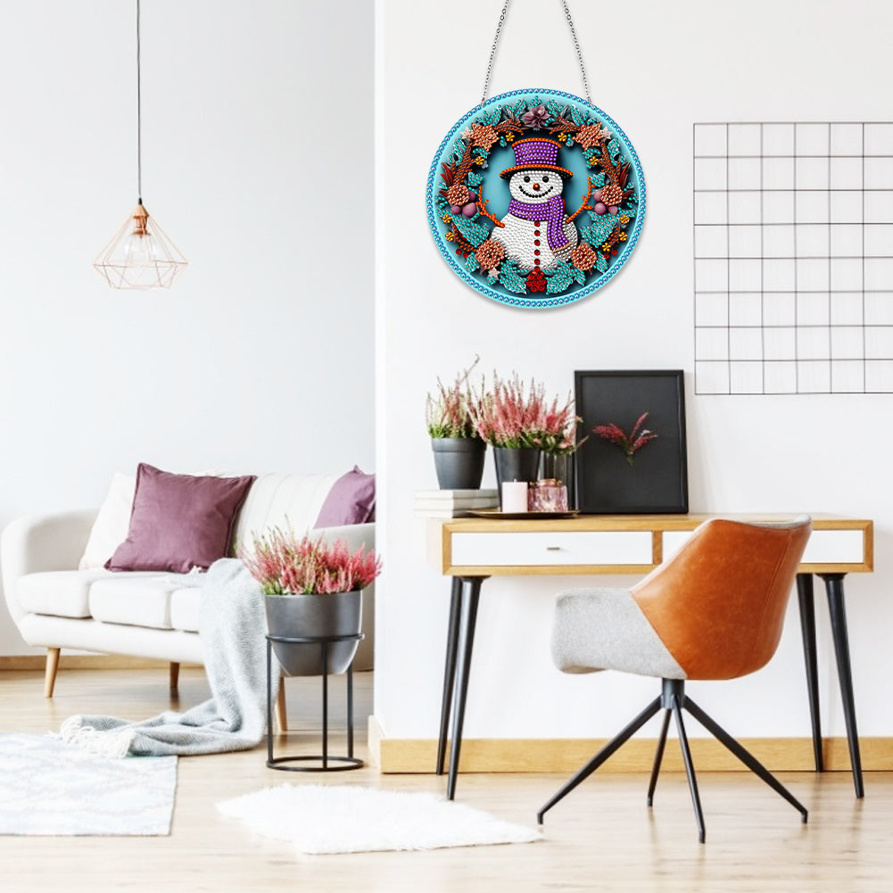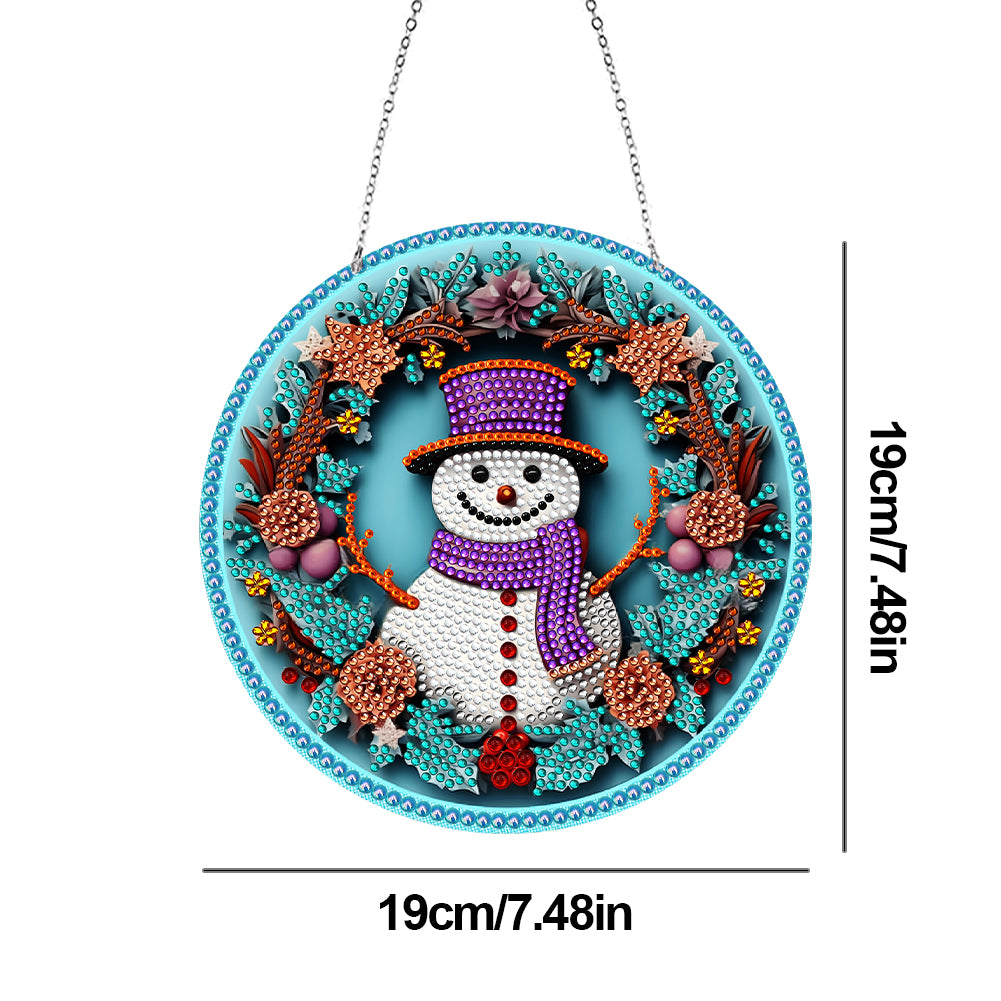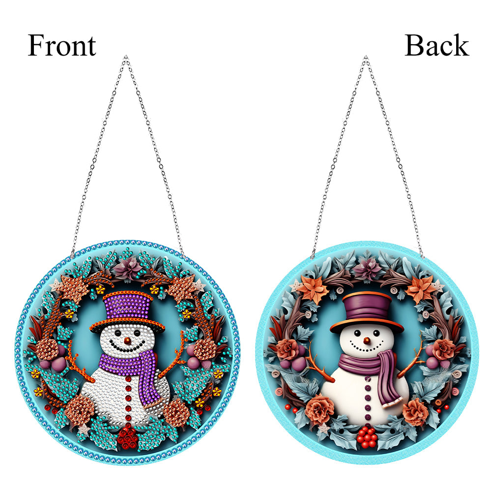 DIY Crystal Diamond Pendant Single-sided 5D Round for Home Garden (Snowman)