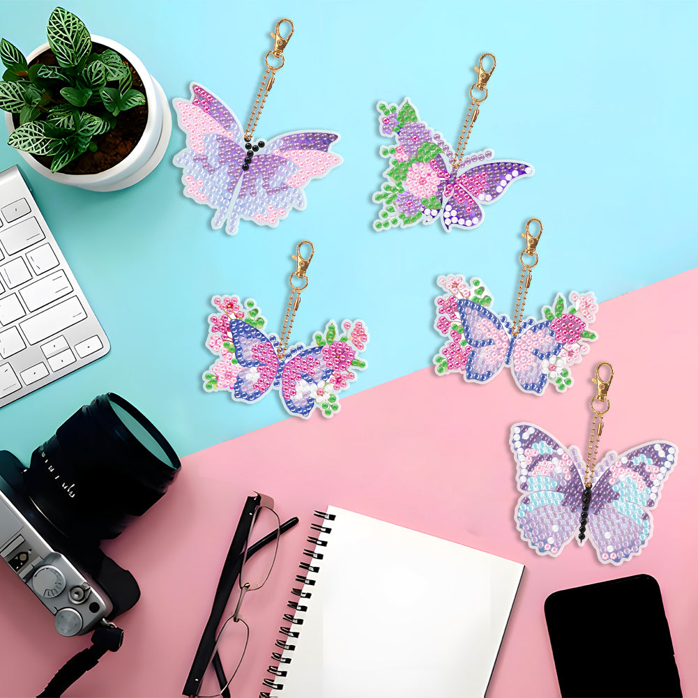 DIY Diamond Art Key Rings Special Shaped 5pcs Butterfly for Beginners Home Decor