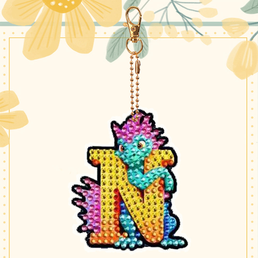 Double Sided Full Drill Keyring Special Shape Diamond Painting Keychain Dinosaur