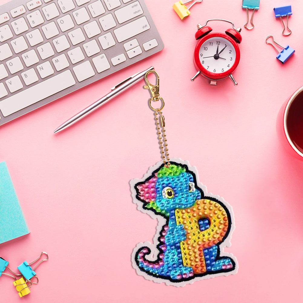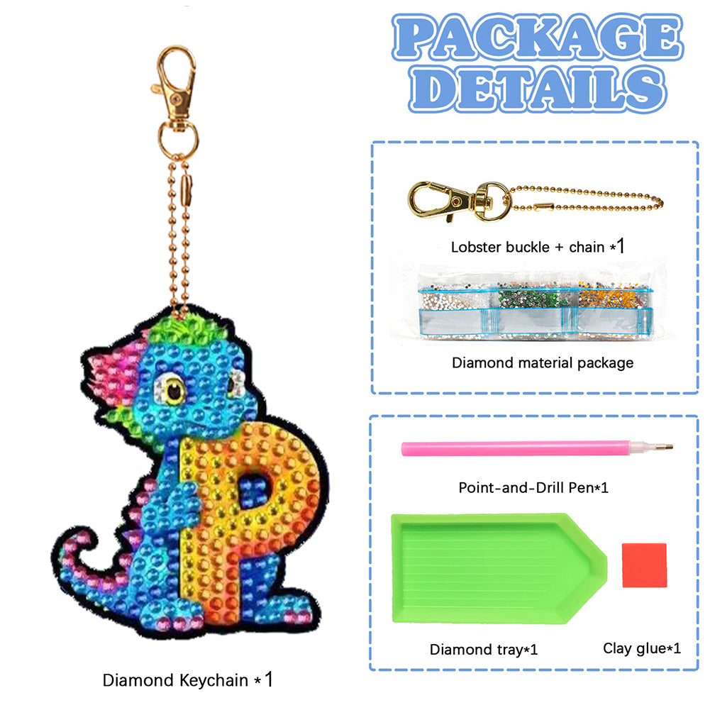 Double Sided Full Drill Keyring Special Shape Diamond Painting Keychain Dinosaur