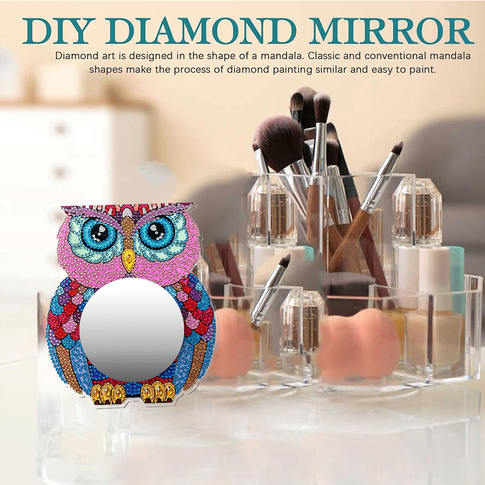 Owl DIY Special Shaped Diamond Painting Makeup Mirror Kit for Beginner Kid Adult