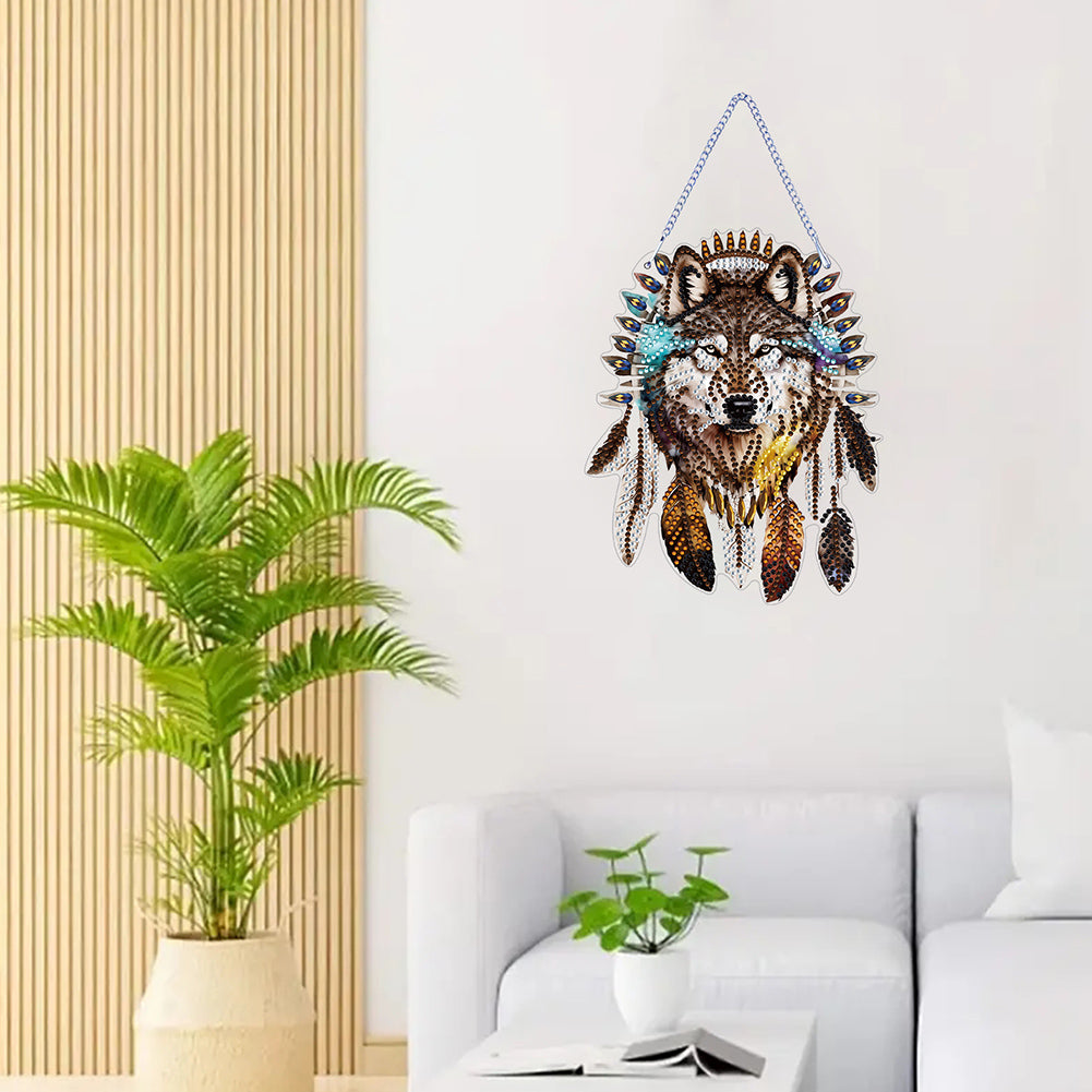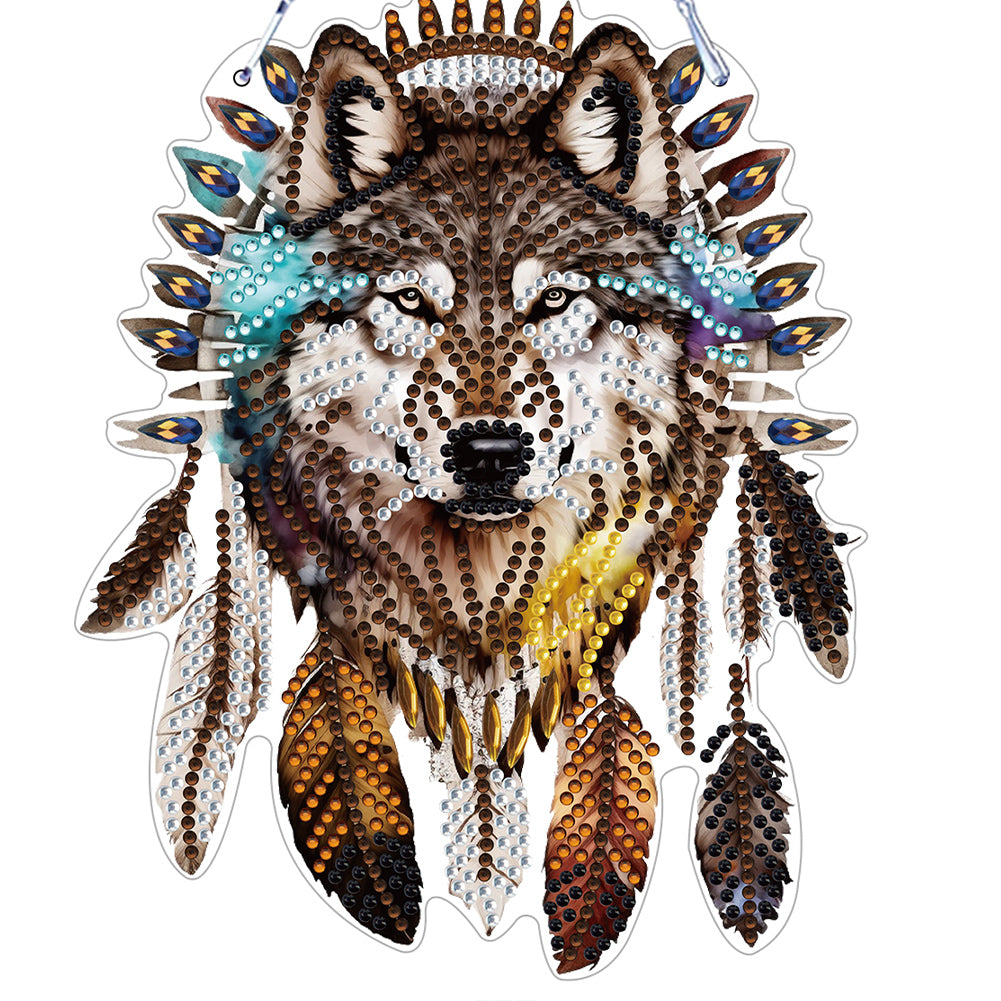 Special Shape DIY Diamond Painting Ornaments Wolf Head Full Drill Art Kit (#5)
