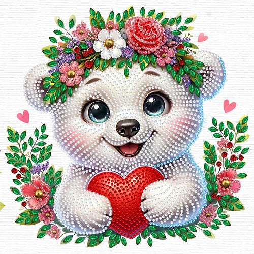 Diamond Painting - Partial Special Shaped - White bear wearing flowers (30*30CM)