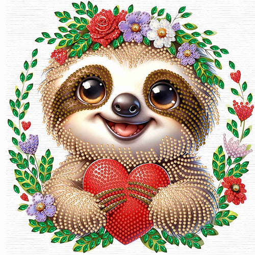 Diamond Painting - Partial Special Shaped - Little sloth wearing flowers (30*30CM)