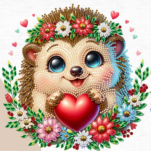 Diamond Painting - Partial Special Shaped - Little hedgehog wearing flowers (30*30CM)