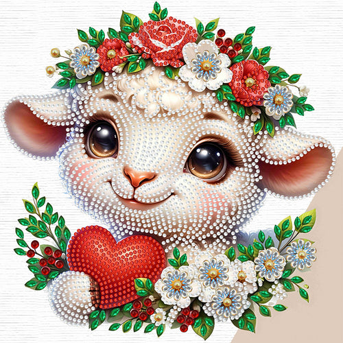 Diamond Painting - Partial Special Shaped - Little sheep wearing flowers (30*30CM)