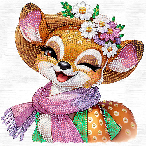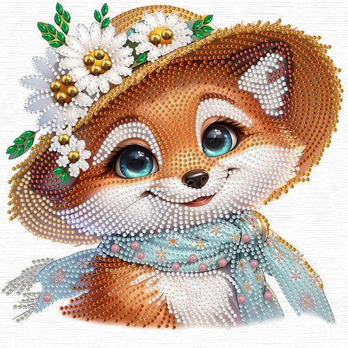 Diamond Painting - Partial Special Shaped - Little fox wearing flowers (30*30CM)