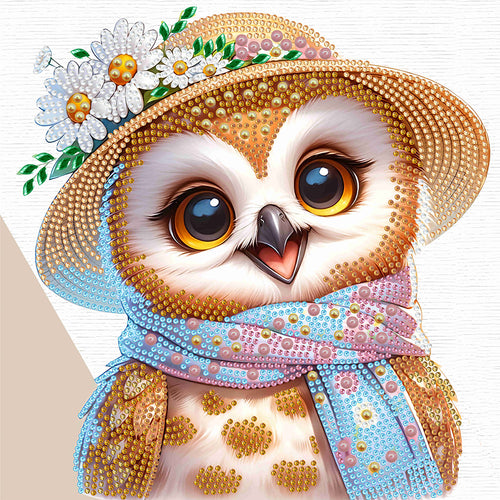 Diamond Painting - Partial Special Shaped - little owl wearing flower (30*30CM)