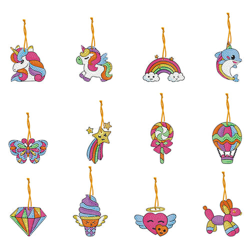 12pcs DIY Crystal Diamond Pendant Paint by Number Single-sided for Gift (GS217)