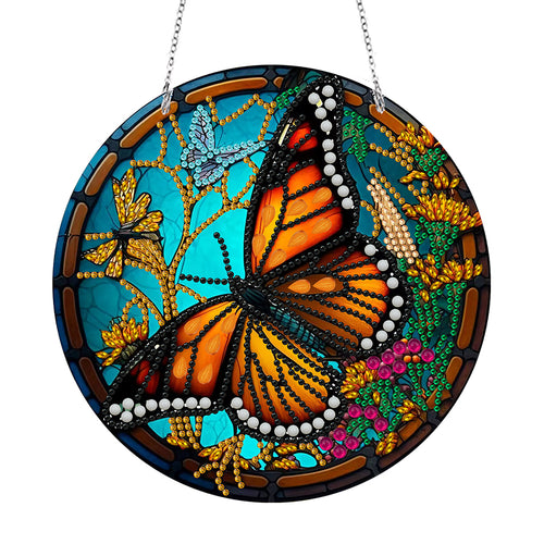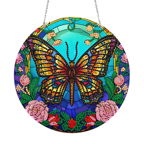 DIY Crystal Diamond Pendant Single-sided 5D Round for Home Garden (Butterfly)