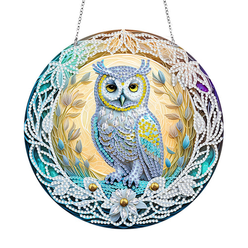 DIY Crystal Diamond Pendant Single-sided 5D Round for Home Garden (Owl)
