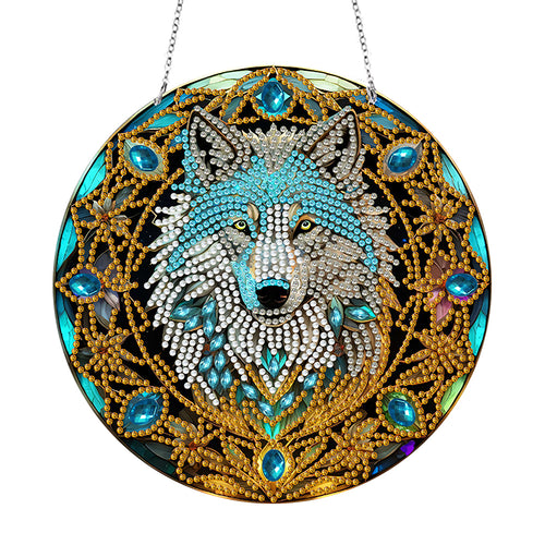 DIY Crystal Diamond Pendant Single-sided 5D Round for Home Garden (Wolf)