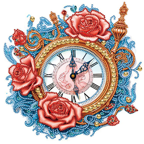 Diamond Painting - Partial Special Shaped - clocks and flowers (30*30CM)