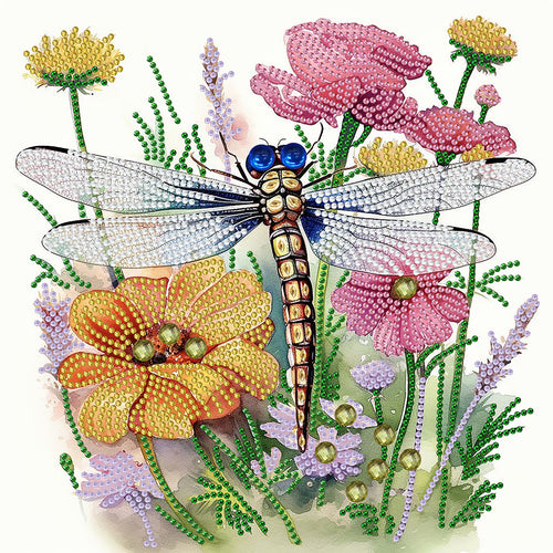 Diamond Painting - Partial Special Shaped - Flowers and Dragonflies (30*30CM)