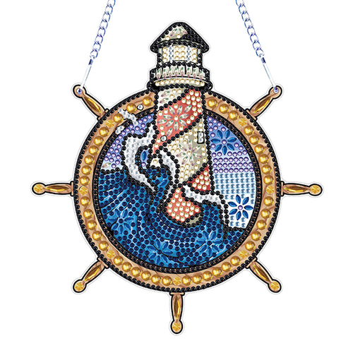 Special Shape Diamond Drawing Hanging Kit Suncatcher (Lighthouse Rudder)