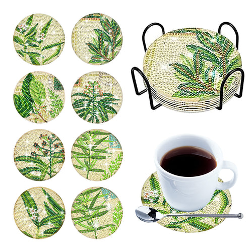6/8/10PCS Special Shape Diamond Painting Art Coaster Kit with Holder Cartoon Cat