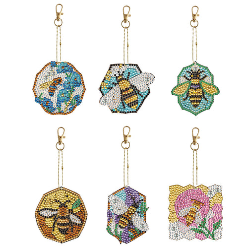 6PCS Double Sided Special Shape Diamond Painting Keychain (Bee)