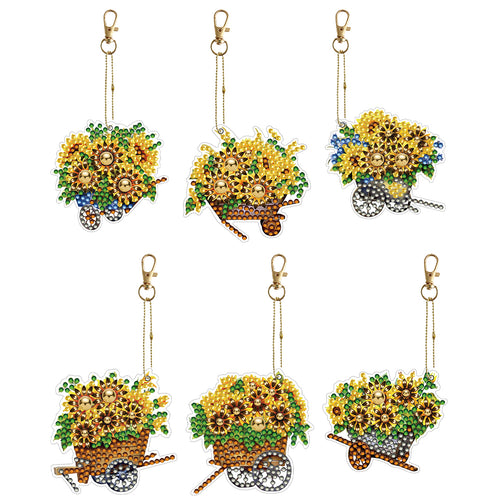 6PCS Double Sided Special Shape Diamond Painting Keychain (Sunflower Buggy)