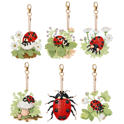 6PCS Double Sided Special Shape Diamond Art Keyring (Garden Ladybird)