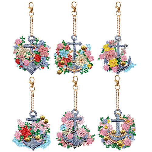 6PCS Double Sided Special Shape Diamond Art Keyring (Flower Anchor)