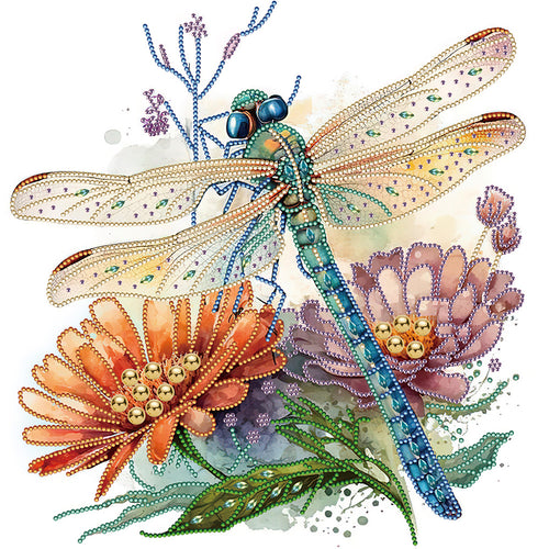 Diamond Painting - Partial Special Shaped - Simple dragonfly and flowers (40*40CM)