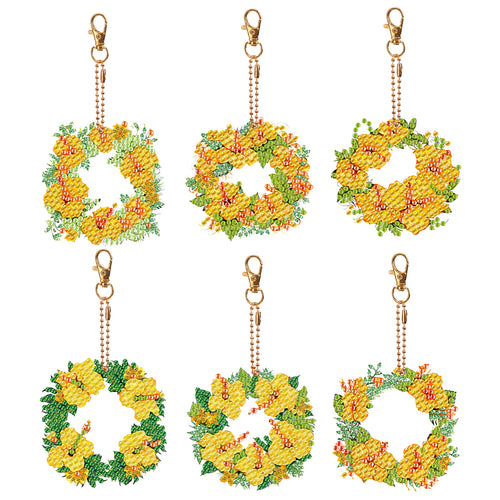 6PCS Double Sided Special Shape Diamond Painting Keychain (Yellow Garland)
