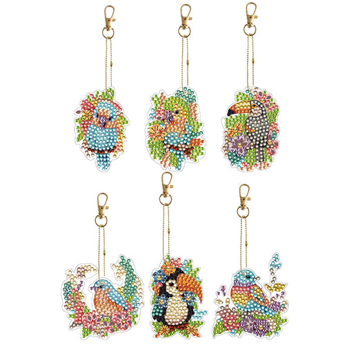 6PCS Double Sided Special Shape Diamond Painting Keychain (Birds)
