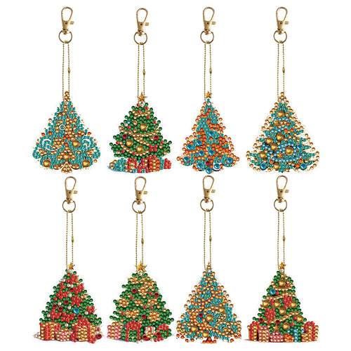 8PCS Double Sided Full Drill Keyring Special Shape Diamond Art Keyring Xmas Tree