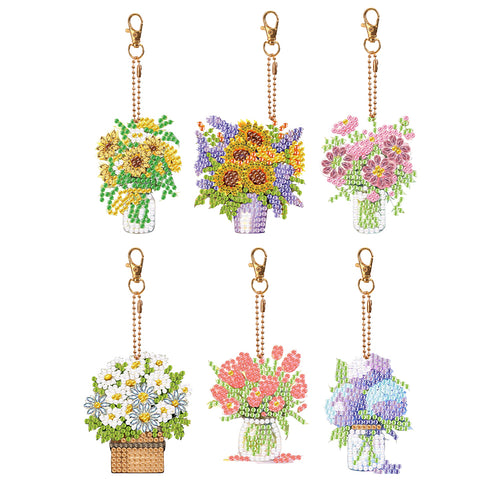 6PCS Double Sided Special Shape Diamond Painting Art Keychain Pendant Flower Pot