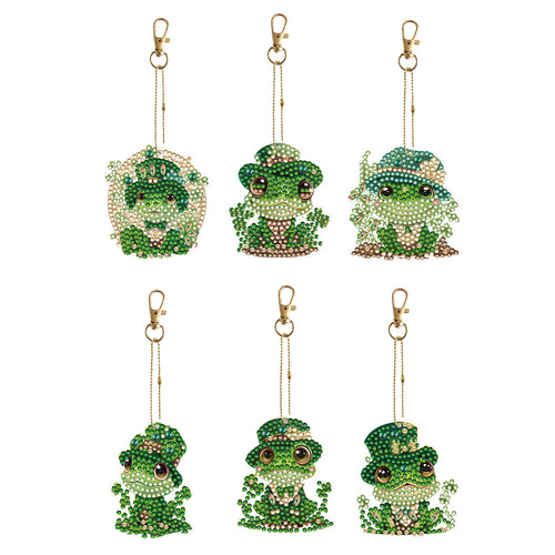 6PCS Double Sided Special Shape Diamond Painting Keychain (Cute Frog)