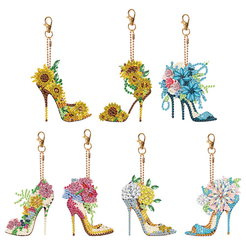 7PCS Double Sided Special Shape Diamond Painting Keychain Pendant (High Heels)