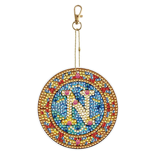 A-Z 26 Letters Double Sided Special Shape Diamond Painting Keychain Pendant (N)