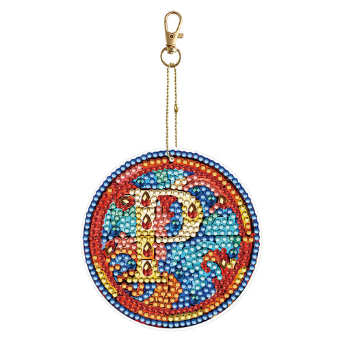 A-Z 26 Letters Double Sided Special Shape Diamond Painting Keychain Pendant (P)